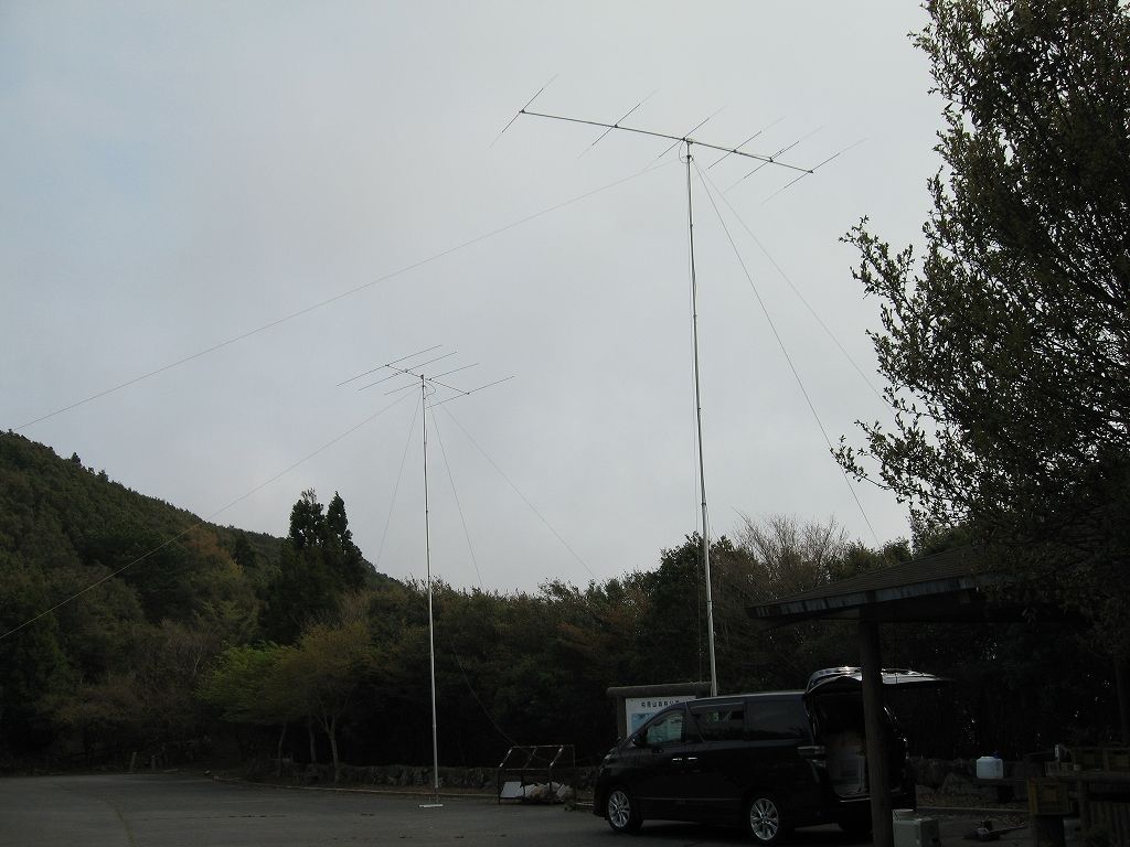 アンテナシステムは、東向け6エレローテータ付き11mh、西向け4エレ自動車で踏みつけ固定9mhです。