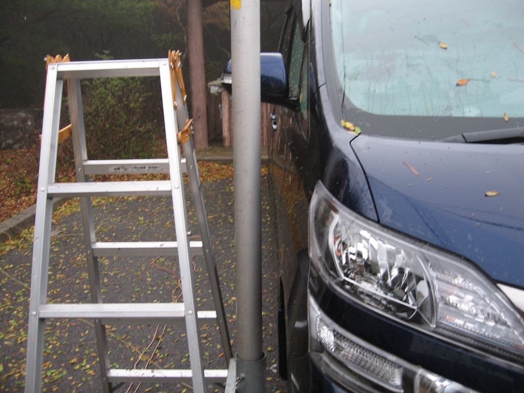 こう見えましても普段から規則正しい生活を心掛けている私でして、こういうときにも普段の早寝の習慣が出て参ります。0時くらいまでは何とかもちこたえられるんですけど、それを過ぎると辛くなってきます。寂しいバンドも影響しているようです。もうこの時点で殆どあきらめモードです。3時くらいに目ざめて再開するも、殆ど伸ばせずで、睡眠をとることに決定しました。で、5時頃、自動車が激しく揺り動かされ、ガゴン、ガゴンと音がします。寝ぼけながらすごい風だなと心配してました。寝ぼけは危機感をも鈍らせていました。ひょっとしてと外に出ると、ポールがフェンダーを叩いていたのでした。ポールが一段落ちしていて、ステーが緩み、ポールが大きく降られていました。フェンダーにはしっかりと縦のキズが付いてしまいました。orz